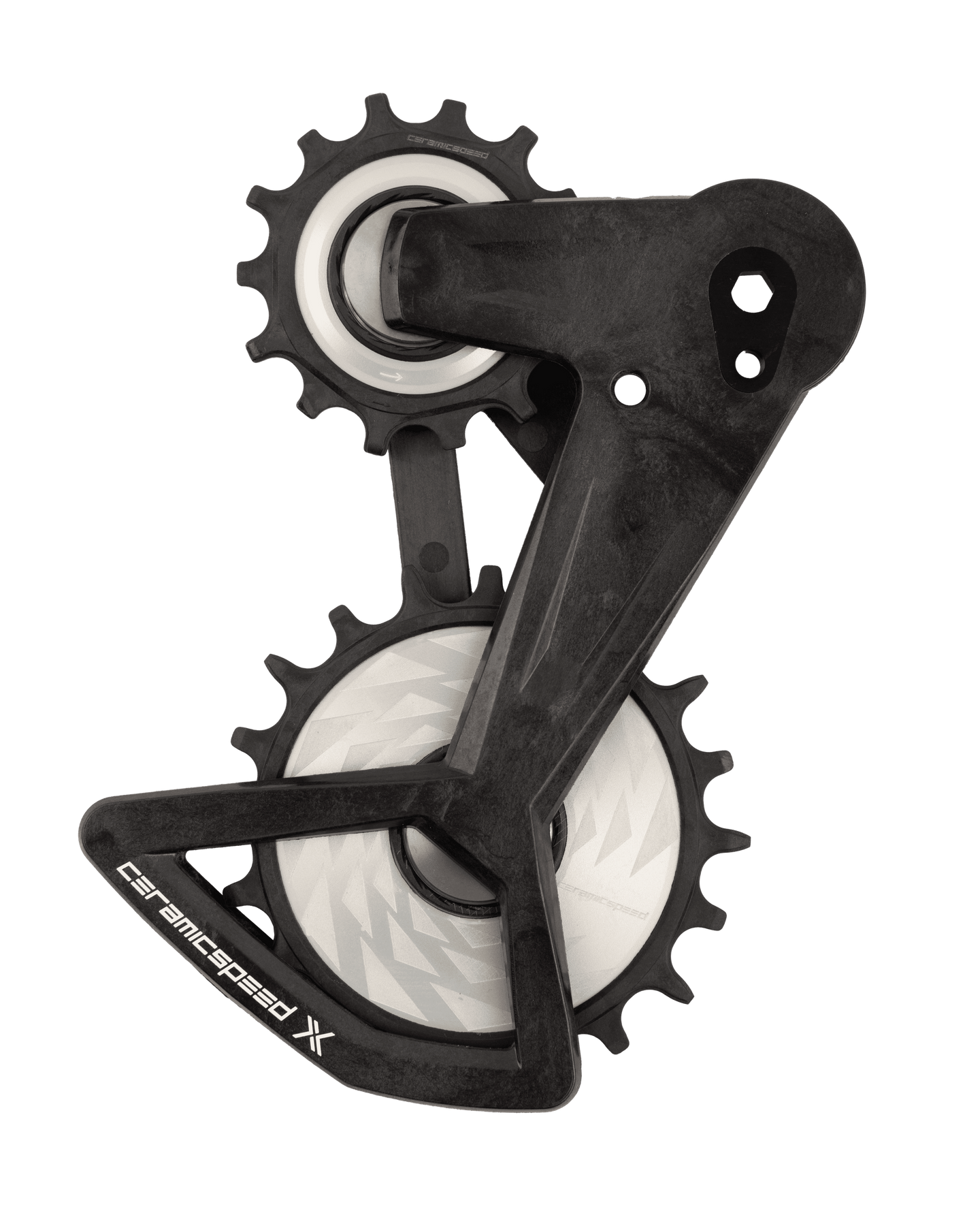Note: while the cage mounting interface is visually the same between SRAM Transmision derailleurs and the new SRAM RED XPLR 13 speed derailleur, the pulley placement and rotation of the cage are different, and we do not support using this cage on any XPLR derailleurs.